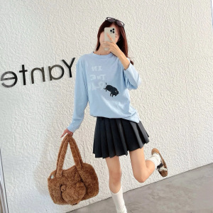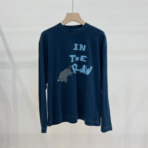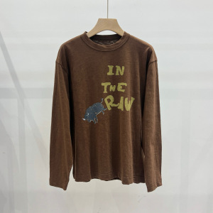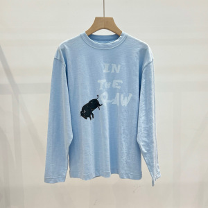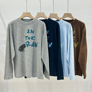 45*家 25早秋新款 时尚通勤百搭领口撞色公牛印花棉质圆领长袖T恤