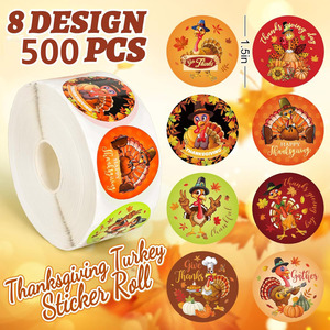 500片感恩节火鸡贴纸卷卡通火鸡纸贴花自粘贴纸秋天秋收信封贴簿