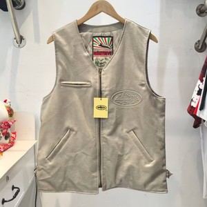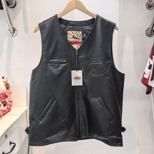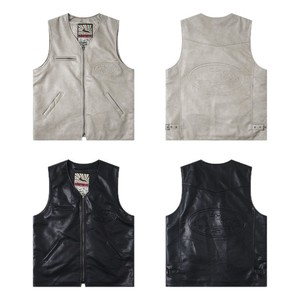 Corteiz恶魔岛复古PU皮马甲夹克男Drill嘻哈街头无袖坎肩V领外套