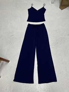 欧美舒适家居服套装纯色基础睡衣V领吊带上衣长裤宽松休闲两件套