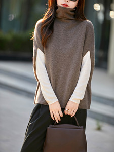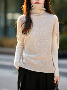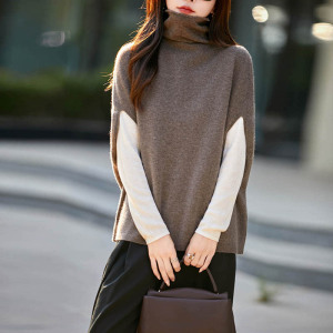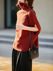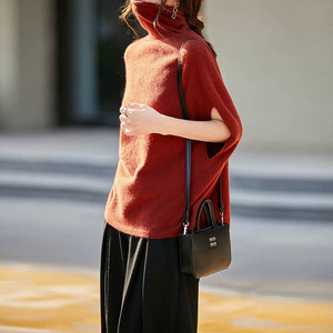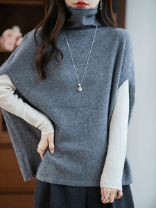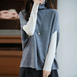 高领马甲女套头无袖毛衣打底针织马夹宽松堆堆领100羊毛背心
