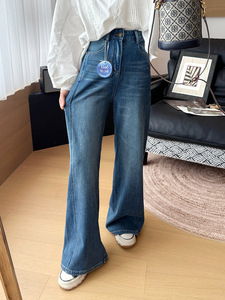 长腿时髦精!猫须双线条牛仔裤女 2025早秋显瘦辣妹微喇叭阔腿裤