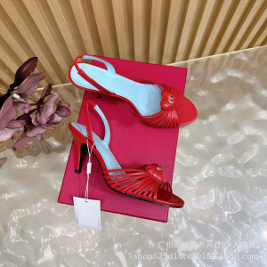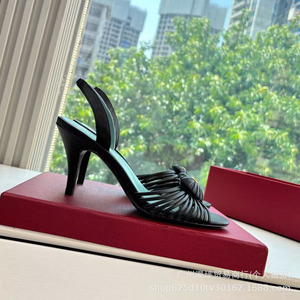 欧美外贸扭结蝴蝶结一字带坡跟法式高跟鞋气质时尚搭夏天拖鞋外穿