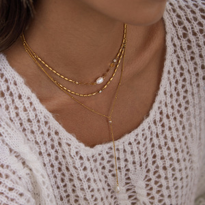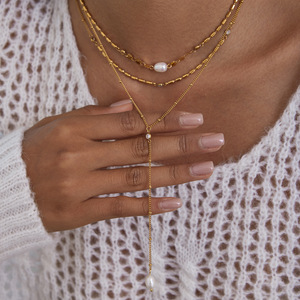 杰鼎欧美不锈钢淡水珍珠y字链轻奢高级感饰品钛钢项链不掉色跨境