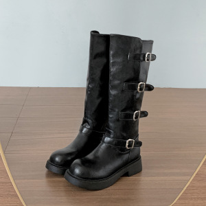 美拉德棕色英伦厚底增高靴子女长筒靴2025新款秋季显瘦粗跟骑士靴
