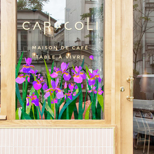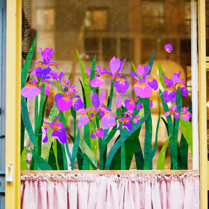 ins风郁金香玻璃贴纸 服装咖啡奶茶甜品店玻璃门贴橱窗装饰静电贴