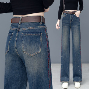 时尚直筒牛仔裤女25秋季新款百搭窄版宽松显瘦高腰显高垂感阔腿裤