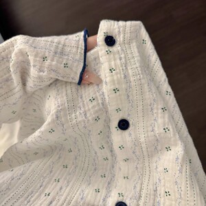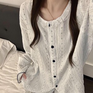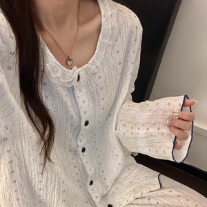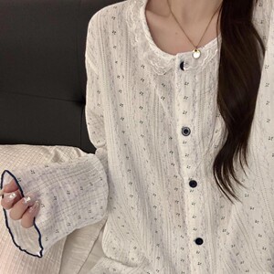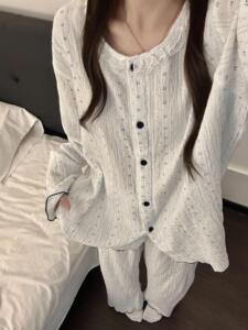 睡衣女春秋季新款小碎花蕾丝花边长袖长裤圆领开衫宽松舒适家居服