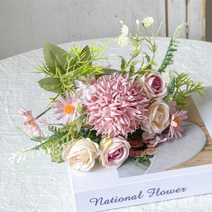 假花仿真花束小清新拉丝玫瑰绣球绢花塑料花干花捧婚庆装饰摆设