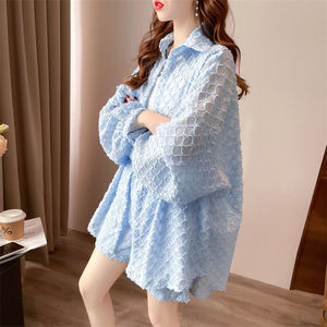 2025年新款防晒衣粉色开衫短裤俩件套设计感宽松潮百搭衬衫套装女