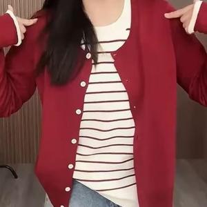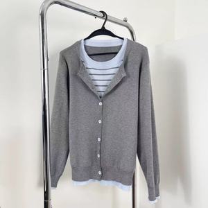 大码新款刺绣假两件针织衫女装新春季胖遮肉显瘦长袖上衣8001#