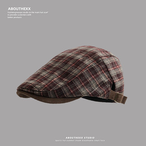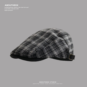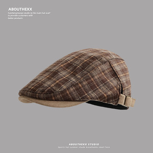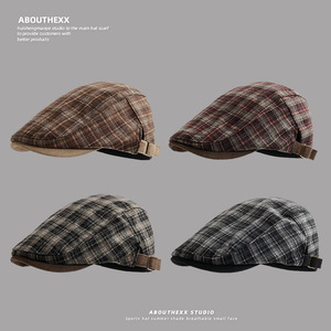 日系格纹复古帽子女春秋新款显脸小前进帽时尚百搭英伦风贝雷帽潮