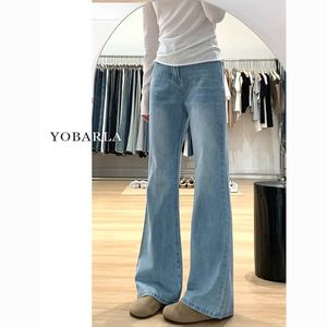 浅色微喇牛仔裤女春秋新款大码胖显瘦梨形身材喇叭马蹄裤子