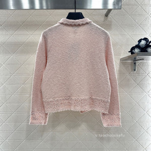 纯色颗粒花边长袖针织衫 甜美少女风显瘦百搭翻领开衫早秋CW81806