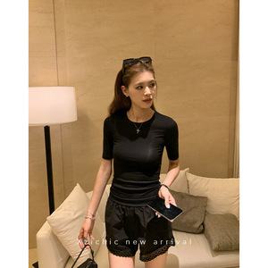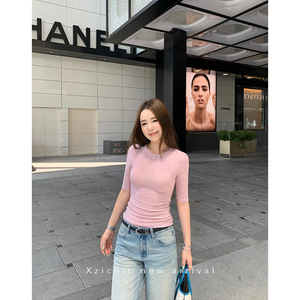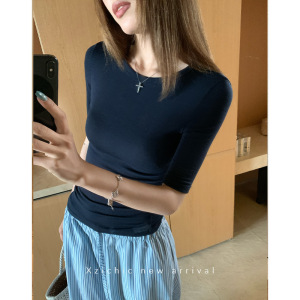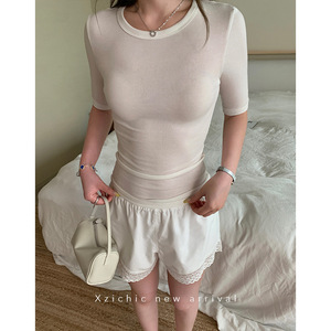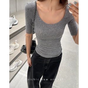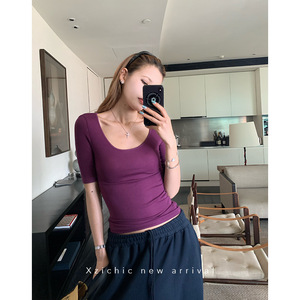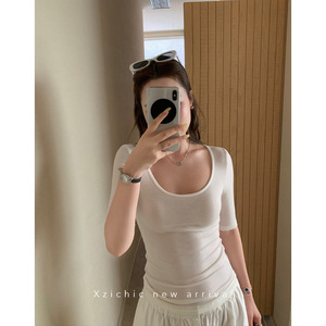 Xzichic 氧气感大U领圆领短袖T恤夏季新款天丝羊毛中袖上衣女