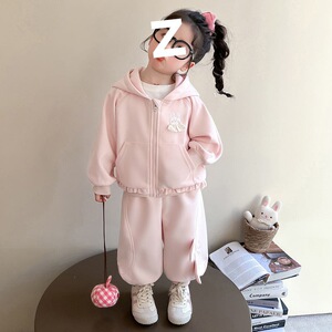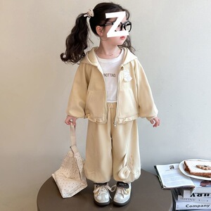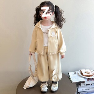 女童春秋套装2025新款洋气儿童休闲外套女宝宝韩版时髦连帽两件套