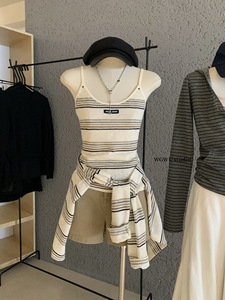 WGWE广州十三行女装2025早秋新款时尚套装条纹吊带开衫上衣两件套