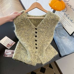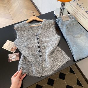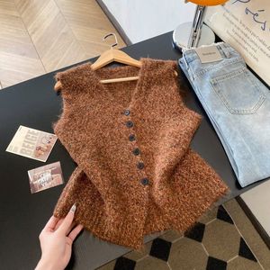 LYX 羊毛V领针织背心女2025新款春秋外搭马夹初秋短款无袖小马甲