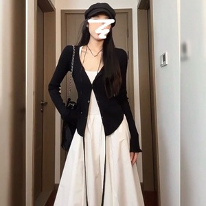 法式高级感白色吊带连衣裙子女早秋2025新款韩系减龄穿搭两件套装