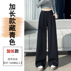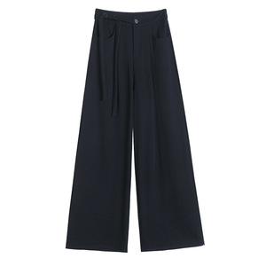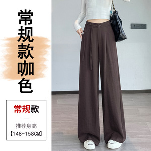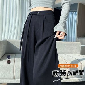 高腰西装阔腿裤女秋2025新款绑带高级感垂感压褶直筒休闲拖地长裤