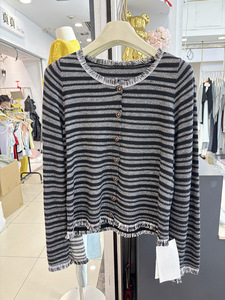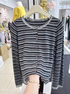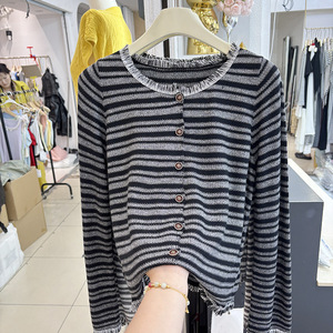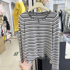 2025秋冬新款小香风流苏条纹毛衣长袖针织开衫女别致洋气百搭上衣