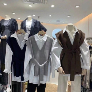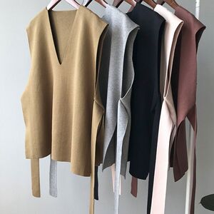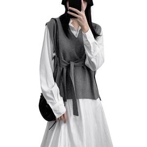 针织马甲女冬装新款韩版宽松外搭上衣无袖坎肩外穿毛衣背心两件套