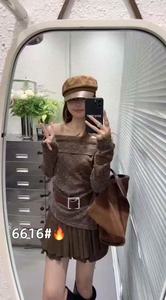 2025秋季新款小众设计一字肩时尚上衣韩系腰带甜辣风穿搭针织衫女