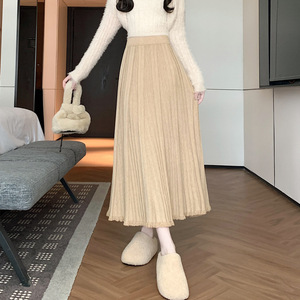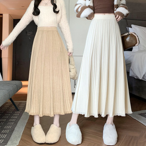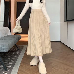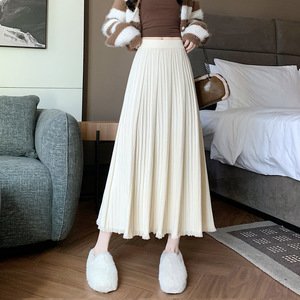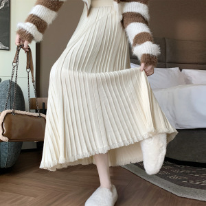 韩版针织流苏半身裙女秋冬天配毛衣高腰显瘦a字裙大摆长裙伞裙子