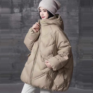 跨境秋冬韩版宽松减龄大码加厚保暖连帽白鸭绒羽绒服女中长款外套