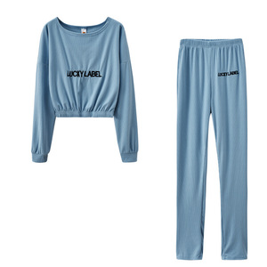 2025亚马逊爆款欧美外贸女装秋季罗纹坑条字母刺绣运动休闲套装