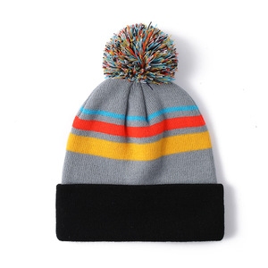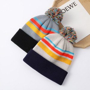 时尚新款多色针织帽秋冬男女保暖条纹帽刺绣针织帽带球字母帽批发