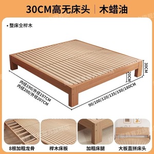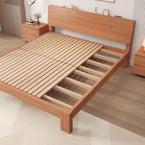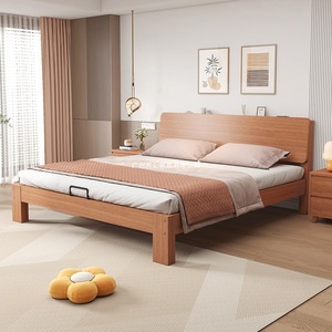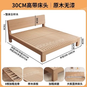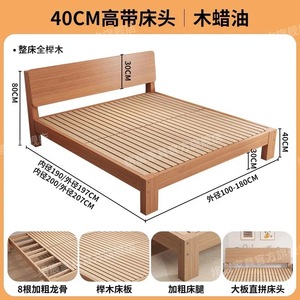 全实木床1米8双人床家用橡木床1米5榻榻米大床出租房1米2单人床架