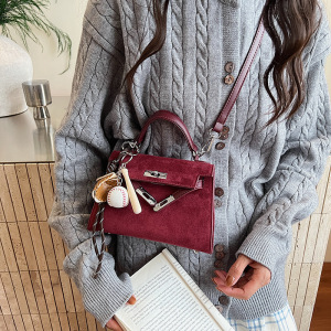 秋冬季复古小众麂皮绒包包2025新款时尚百搭斜挎包单肩手提凯莉包