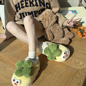 蒜鸟棉拖鞋女冬季包跟加绒保暖搞怪卡通外穿防滑室内居家毛绒棉鞋