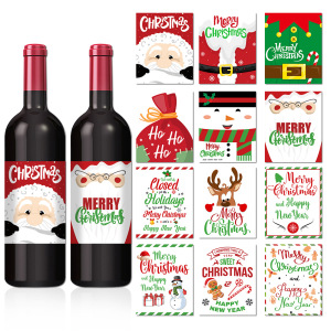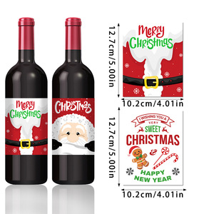 亚马逊新款圣诞节派对卡通圣诞老人不干胶红酒瓶贴派对装饰用品