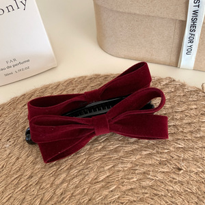 丝绒蝴蝶结香蕉夹韩系法式慵懒气质竖夹半扎发盘发夹子发卡秋冬新