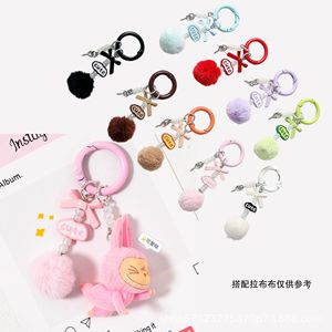 新款Labubu配饰毛球手机链串珠diy手工毛球链萌粒挂链挂件钥匙扣