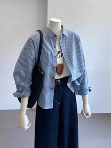 衬衣女2025秋高级感轻奢减龄洋气复古港风穿搭宽松条纹衬衫A6746