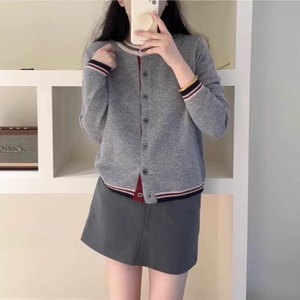 日韩宽松休闲学院风针织开衫秋冬新款圆领小个子撞色软糯毛衣外套