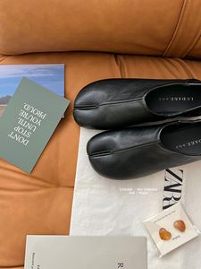 平底分趾猪蹄鞋单鞋女鞋子2025春秋季马蹄猪脚鞋一脚蹬黑色小皮鞋