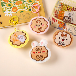 中秋月饼毛绒玩偶配件布艺娃娃吱吱叫钥匙扣挂件diy胸针饰品配件