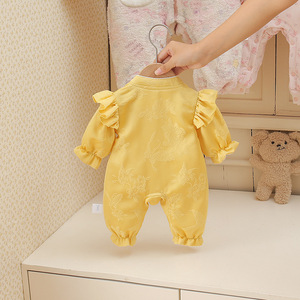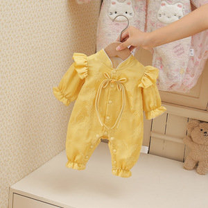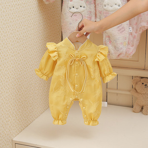 双层春秋金色连体衣女宝宝中式新生儿加可爱公主新生儿外出哈衣