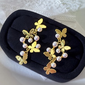 小众精致长款灵动多蝴蝶流苏耳环天然淡水珍珠耳钉修饰脸型耳饰