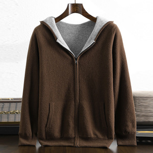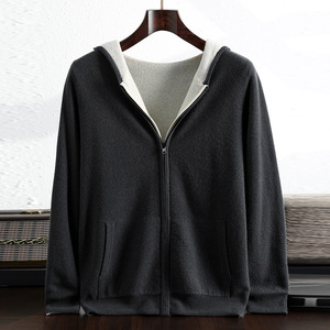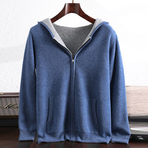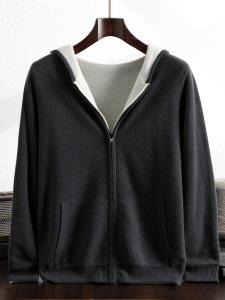 100%澳洲羊毛双面可穿连帽开衫男士加厚保暖毛衣外套河北工厂批发