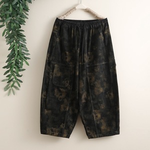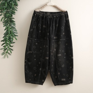 潮流字母印花明线拼接牛仔裤女时尚老爹裤大码宽松垮裤阔腿哈伦裤