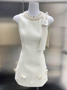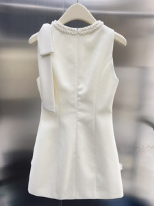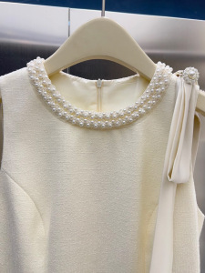 2025秋季新款名媛千金风重工珍珠蝴蝶结飘带小香风无袖连衣裙