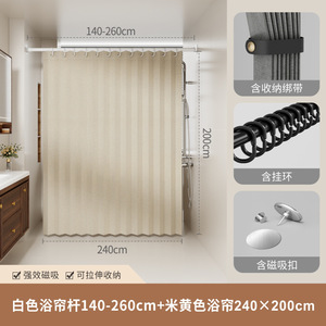 【浴帘套装】磨砂白140-260cm浴帘杆+米黄浴帘长240cm