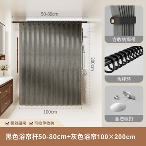【浴帘套装】磨砂黑50-80cm浴帘杆+雅灰浴帘长100cm