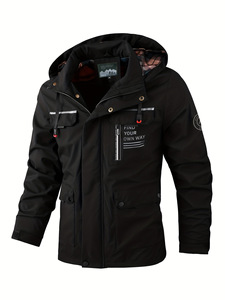 新款春秋工装夹克男多口袋跨境外套休闲大码可脱卸帽男夹克欧码