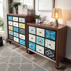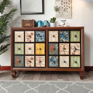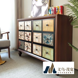 美式彩绘实木斗柜储物柜子抽屉客厅靠墙卧室收纳阳台大容量五斗柜